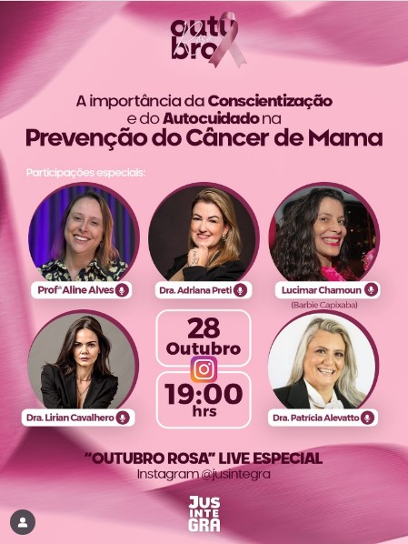 #OutubroRosa#PrevençãoCâncerDeMama#Autocuidado#SaúdeDaMulher#LiveJusintegra#CâncerDeMama#Conscientização#SaúdeFeminina