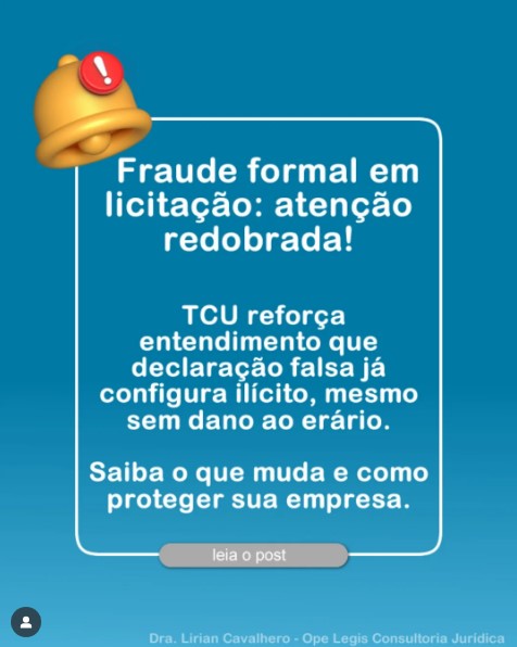 ๐Ÿ“„ O ๐—ฝ๐—ฎ๐—ฟ๐—ฒ๐—ฐ๐—ฒ๐—ฟ ๐—ท๐˜‚๐—ฟ๐—ถฬ๐—ฑ๐—ถ๐—ฐ๐—ผ ๐—ฒ๐—น๐—ฎ๐—ฏ๐—ผ๐—ฟ๐—ฎ๐—ฑ๐—ผ ๐—ฝ๐—ฒ๐—น๐—ฎ ๐——๐—ฟ๐—ฎ. ๐—Ÿ๐—ถ๐—ฟ๐—ถ๐—ฎ๐—ป ๐—–๐—ฎ๐˜ƒ๐—ฎ๐—น๐—ต๐—ฒ๐—ฟ๐—ผ, ๐—ฑ๐—ฎ ๐—ข๐—ฝ๐—ฒ ๐—Ÿ๐—ฒ๐—ด๐—ถ๐˜€ ๐—–๐—ผ๐—ป๐˜€๐˜‚๐—น๐˜๐—ผ๐—ฟ๐—ถ๐—ฎ ๐—๐˜‚๐—ฟ๐—ถฬ๐—ฑ๐—ถ๐—ฐ๐—ฎ, analisa detalhadamente essa decisรฃo e seus impactos para empresas que participam de certames pรบblicos.